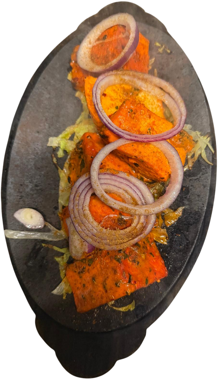 Cottage cheese marinated, seasoned with paprika, lemon and cumin seeds
