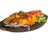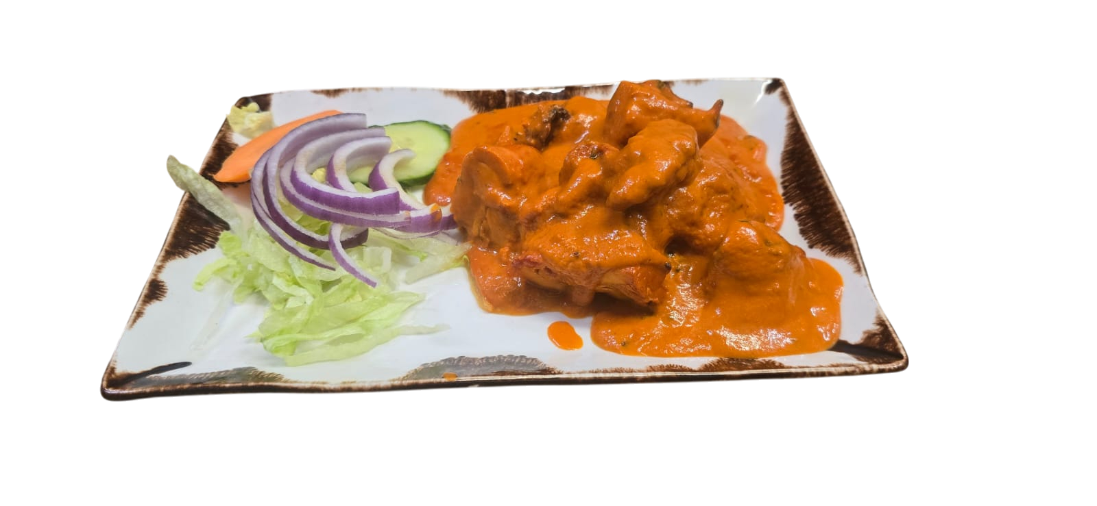 Marinated boneless pieces of chicken in orange and ginger sauce