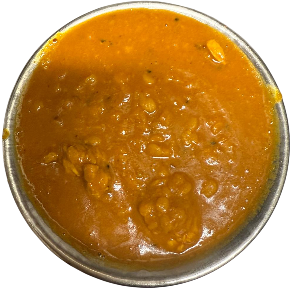 Yellow lentils delicately cooked and with seasoned with spices and ginger