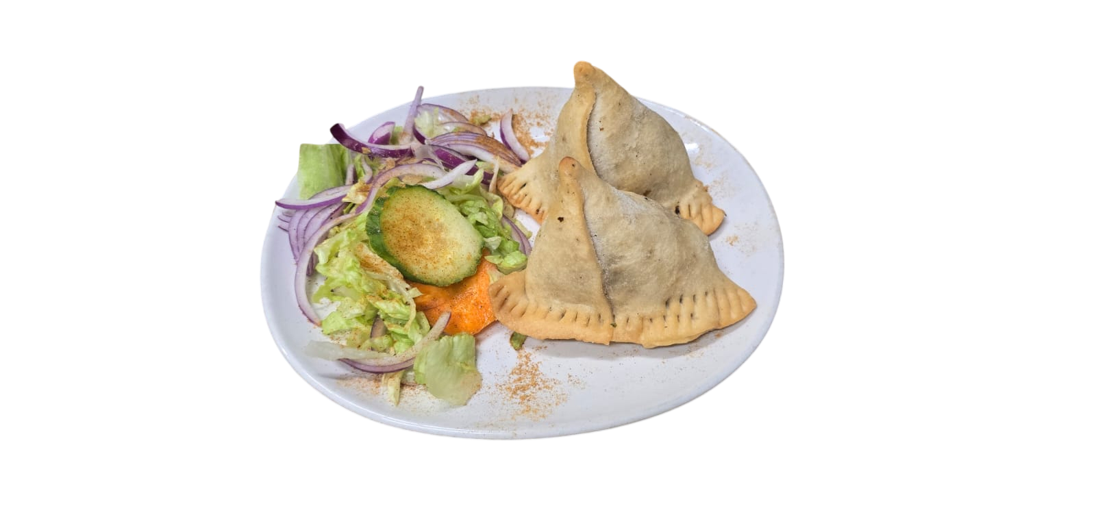 Triangle shaped pastry, filled with beef mince